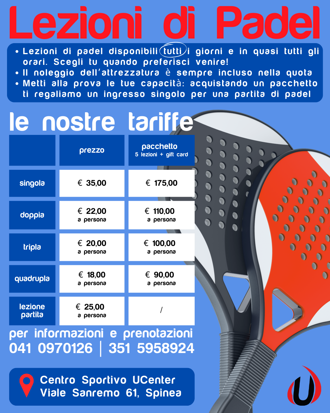 Contattaci per maggiori informazioni o per fissare la tua lezione di padel!
